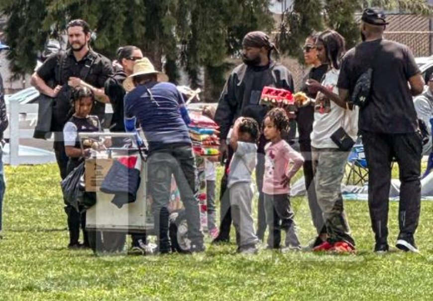 Kanye West usigaye wiyita Ye yabonywe ari ku kibuga umuhungu we Saint yarimo gukiniraho ndetse ari hafi y'uwahoze ari umugore we Kim Kardashian. Uwahaye amakuru "TMZ" yahishuye ko Kim yari yicaye ku ntebe naho Kanye West amuhagaze iruhande bose bari kwitegereza uko umuhungu wabo akina.