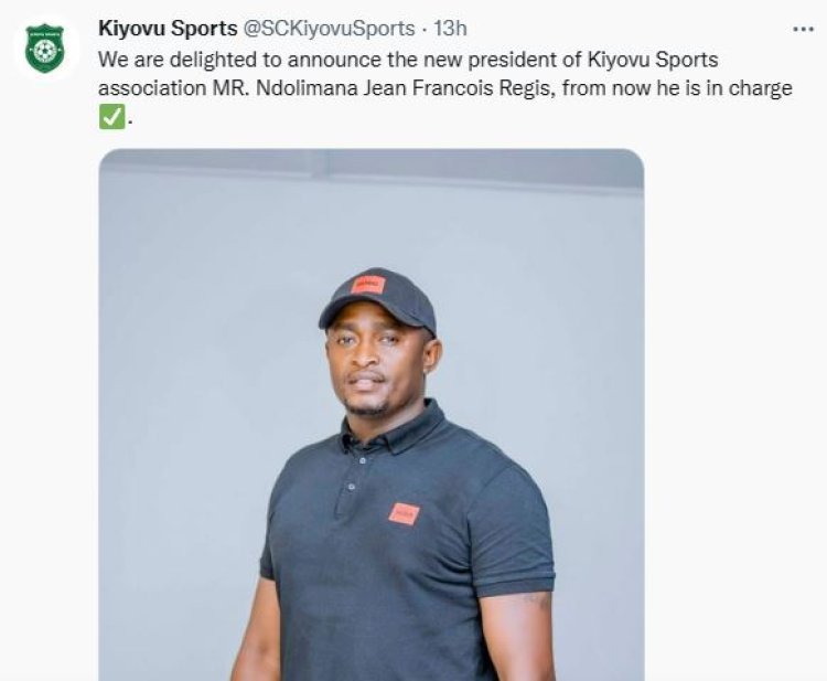 Bati “Twishimiye gutangaza perezida mushya wa Kiyovu Sports Association, Bwana Ndorimana Jean François Regis. Ari mu nshingano guhera nonaha.”