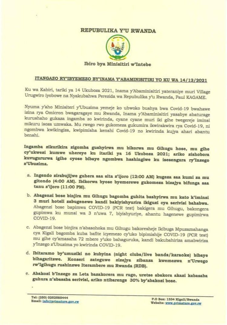 Inama y’abaminisitiri yateranye kuri uyu wa Kabiri 14 ukuboza 2021 iyobowe na nyakubahwa perezida wa repuburika w’u Rwanda yigaga kuko bahanagana n’ubu bwandu bushya hafashwe ingamba zitandukanye zigamije kwirinda ubwiyongere bwa covid mu Rwanda.