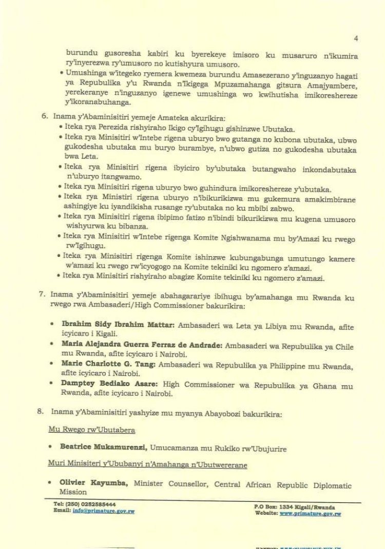 Imyanzuro y’inama y’abaminisitiri yasohotse ku mugoroba wo kuri uyu wa kabiri.