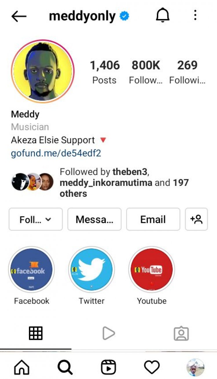 Meddy becomes the third Rwandan having many followers on Instagram; the first Rwandan blogger who owns many followers, is Shadia Mbabazi. She is popularly known as Shaddyboo having 977 k followers. The second is the president of Rwanda, H.E Paul Kagame having 886k followers.