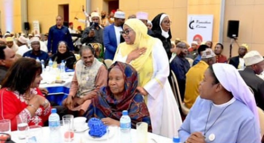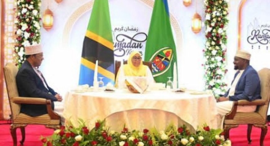 Ku mugoroba wo kuri uyu wa 15 Mata, Perezida Samia yateguye umusangiro mukuru ku rwego rw' igihugu mu ngoro ( Iftar Ikulu) aho yatumiye abayobozi bakuru mu gihugu, abacuruzi, abandi bafitiye akamaro umuryango mugari n' ibyamamare. Abahuriza mu cyumba kimwe maze barizihirwa.