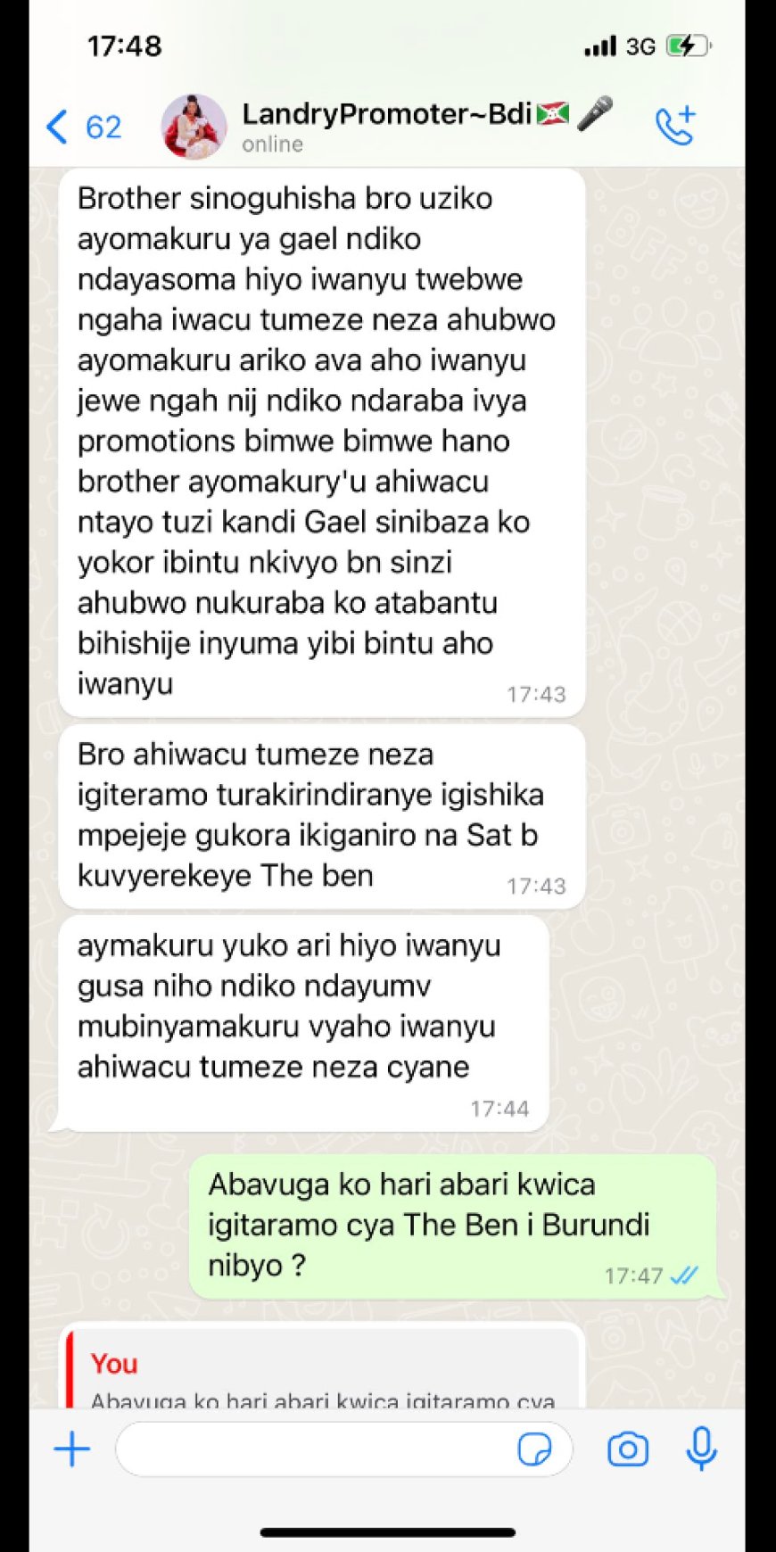 Igitaramo cya The Ben kigiye kubera i Burundu cyagarutsweho bivugwa ko kidashobora kuba ku wa 30 Nzeri na 1 Ukwakira uyu mwaka. Umunyamakuru w'i Burundi yatanze umucyo kuri ibyo byavugwaga.
