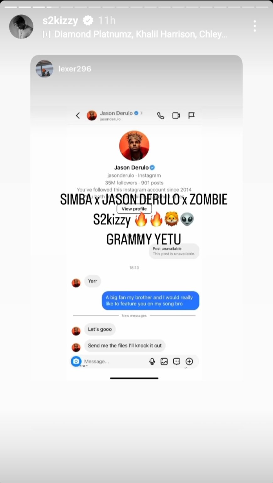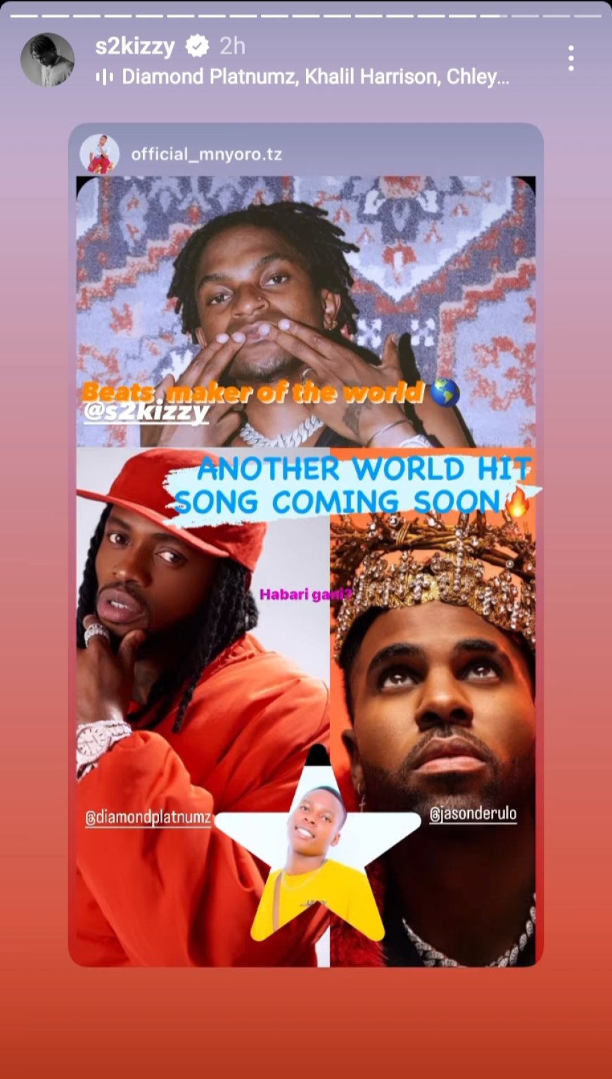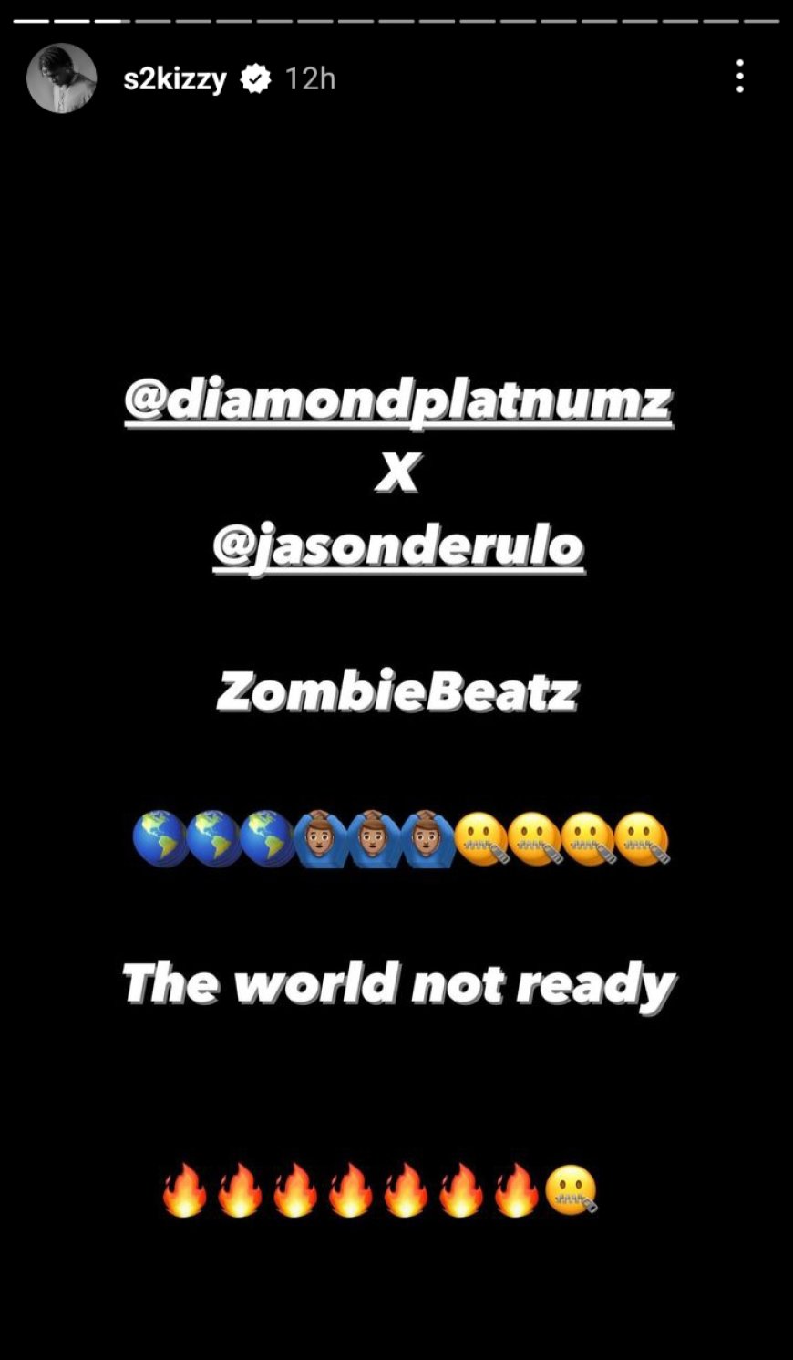 Salmin Kasimu Maengo uzwi mu mwuga wo gutunganya no kwandika indirimbo muri Leta Zunze Ubumwe za Tanzania nka S2KIZZY cyangwa se Zombie yaciye ku rubuga rwa Instagram ahishurira abarukoresha ko ari we uzakora indirimbo izajya hanze mu minsi iri imbere, izahuriza hamwe Diamond Platnumz na Jason Derulo.